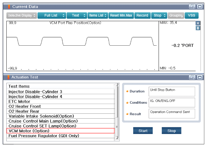 - Monitor "VCM Port Flap Position" parameter in "Current Data