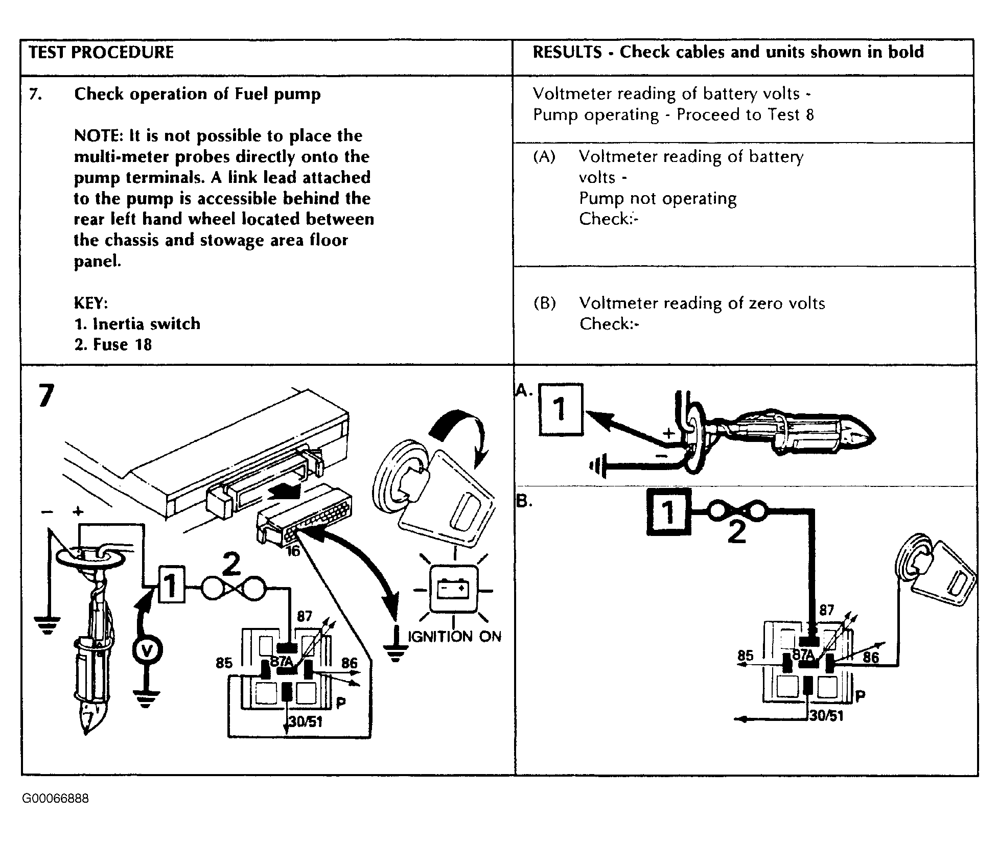Fig 2: Fuel Pump Circuit Test Procedure No. 18 (1987-88)