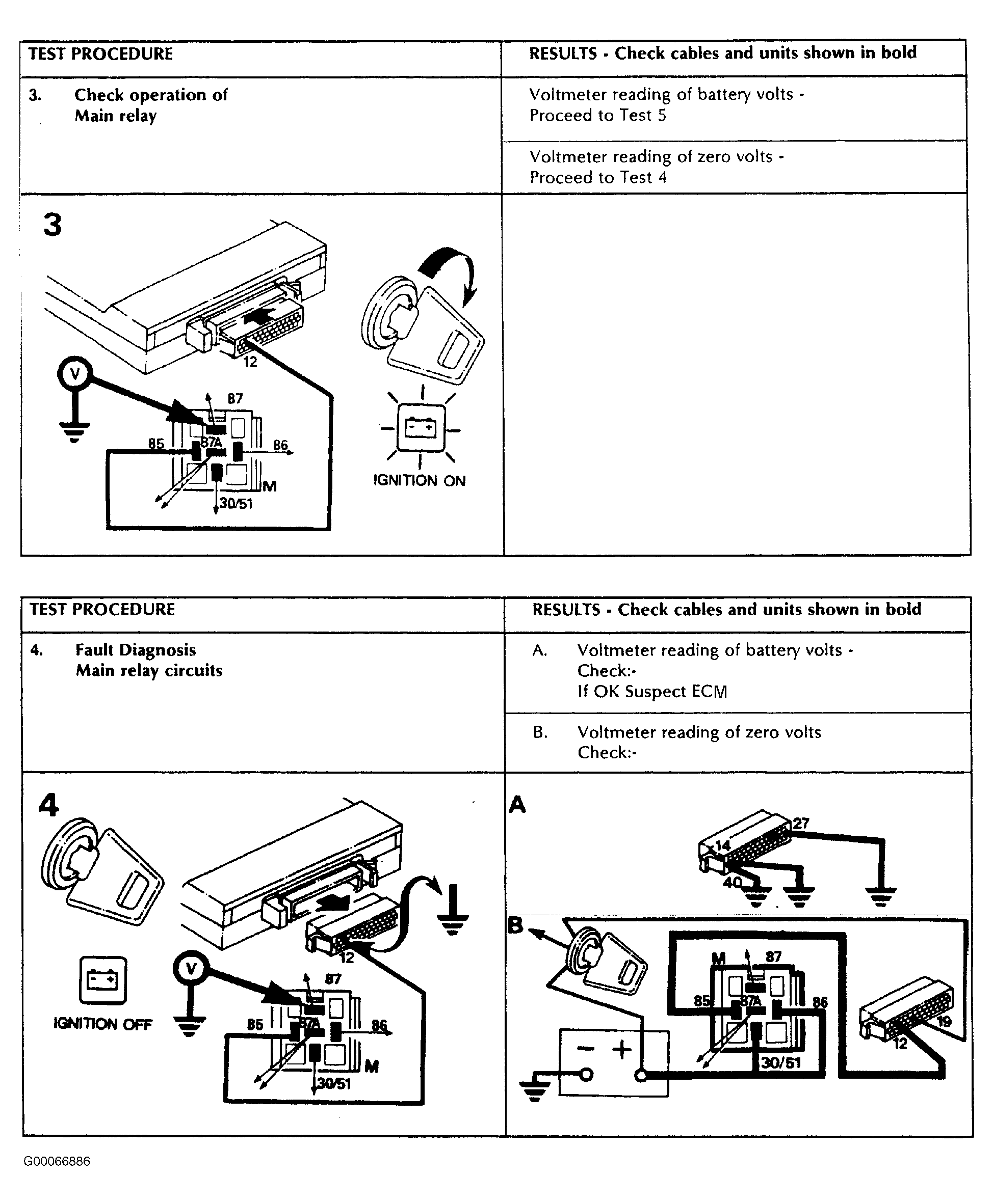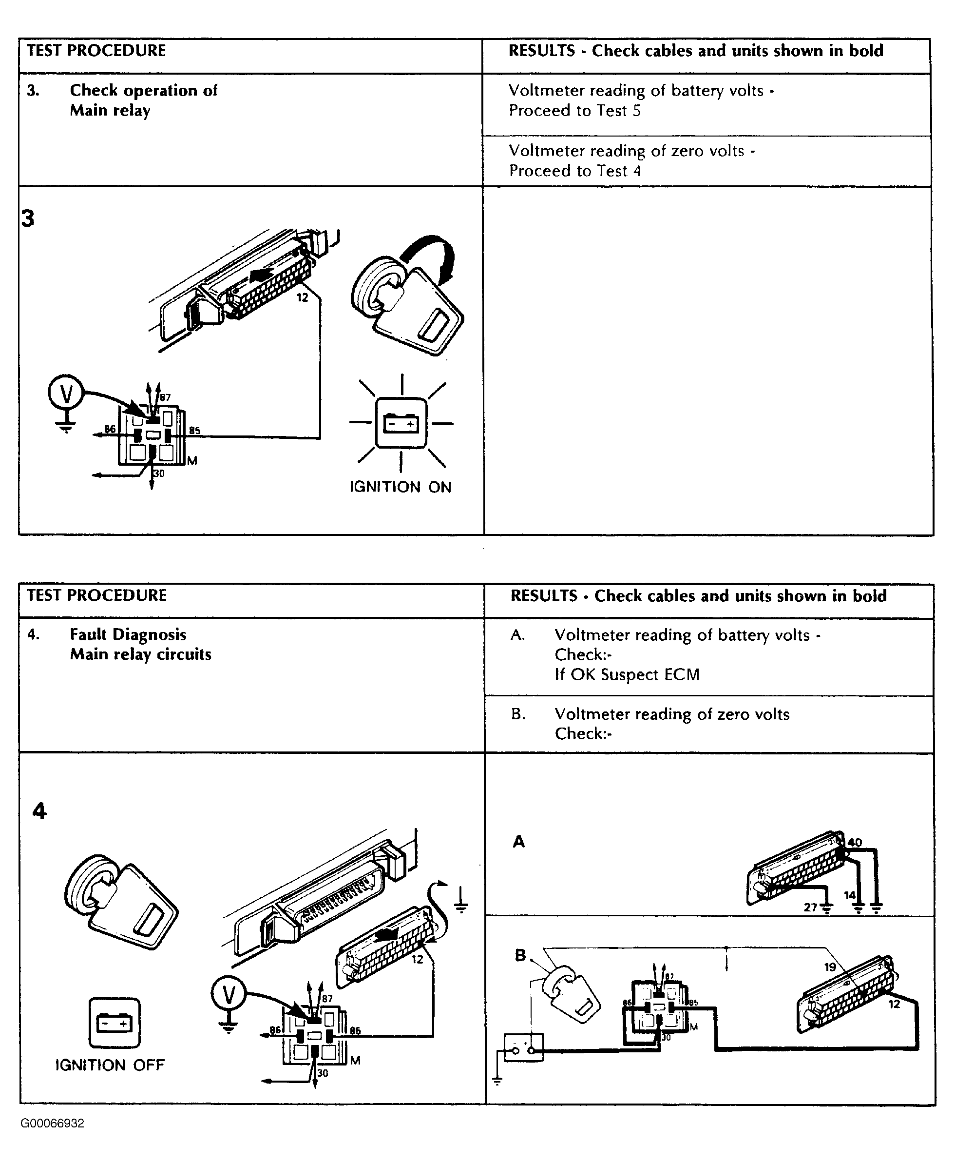 Fig 2: Main Relay Test Procedure No. 3 & 4 (1989-91)
