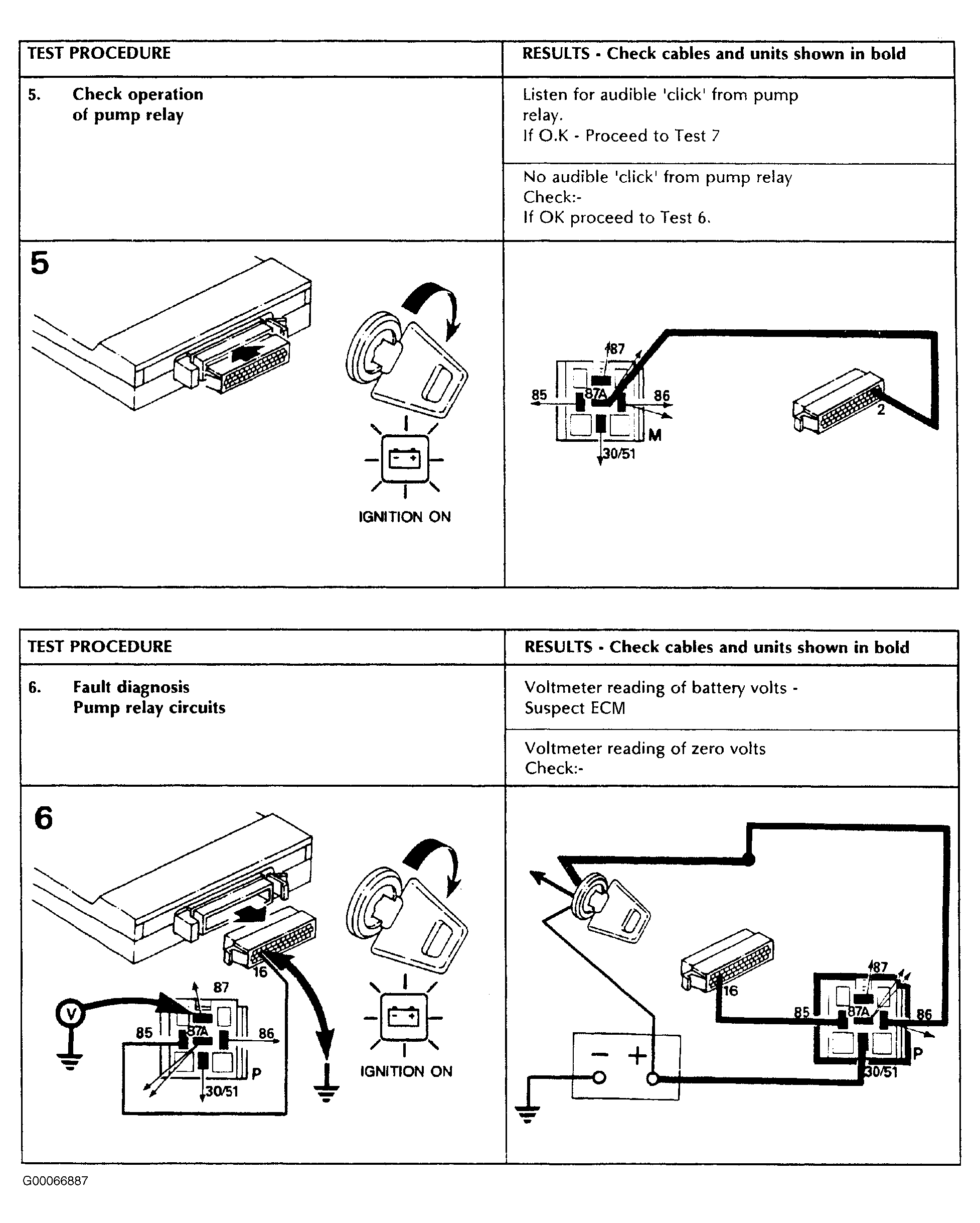 Fig 1: Fuel Pump Relay Test Procedure No. 5 & 6 (1987-88)