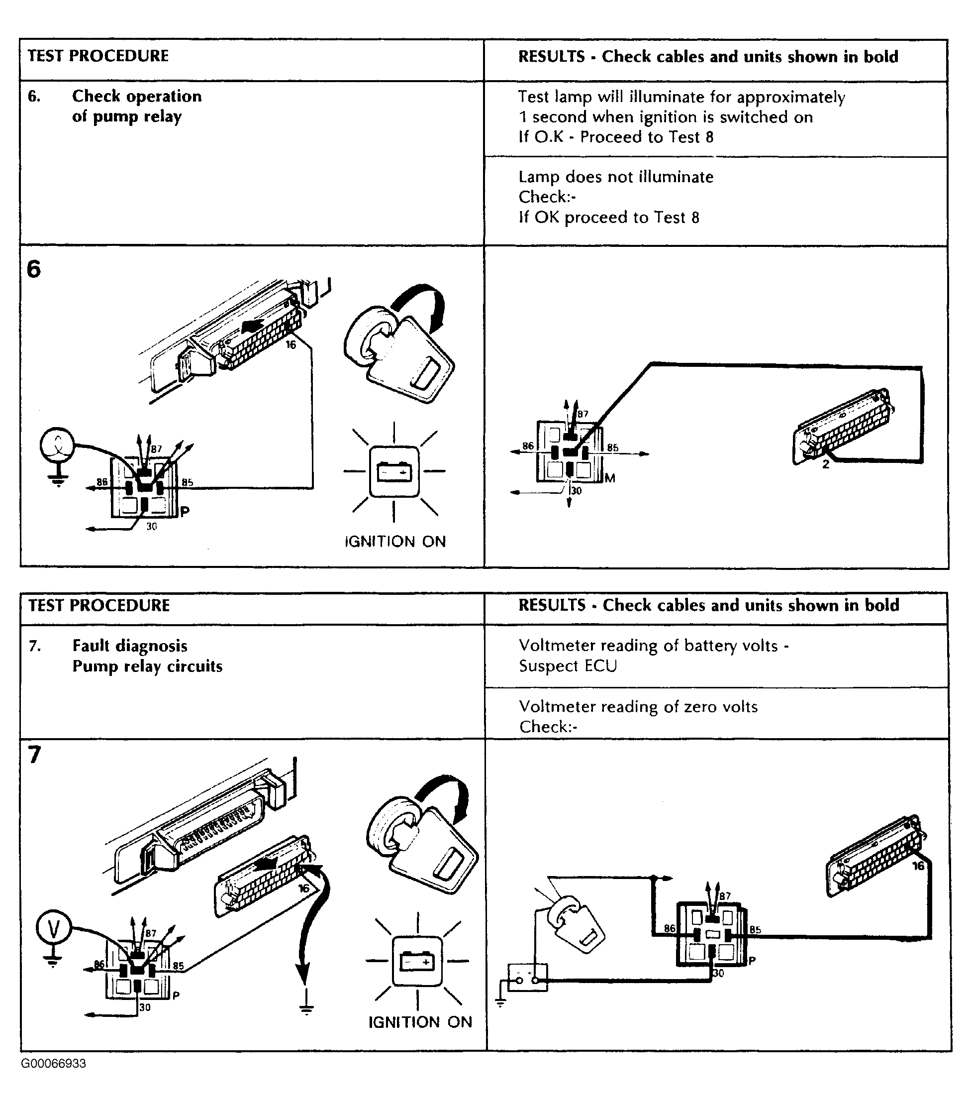 Fig 2: Fuel Pump Relay Test Procedures No. 6 & 7 (1989-91)