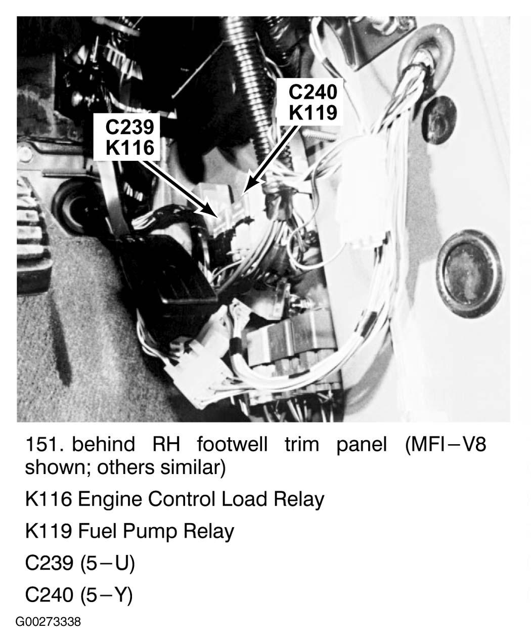 1. Remove fuel pump relay. Fuel pump relay is located behind right footwell trim panel. See Figure . Start and run engine.