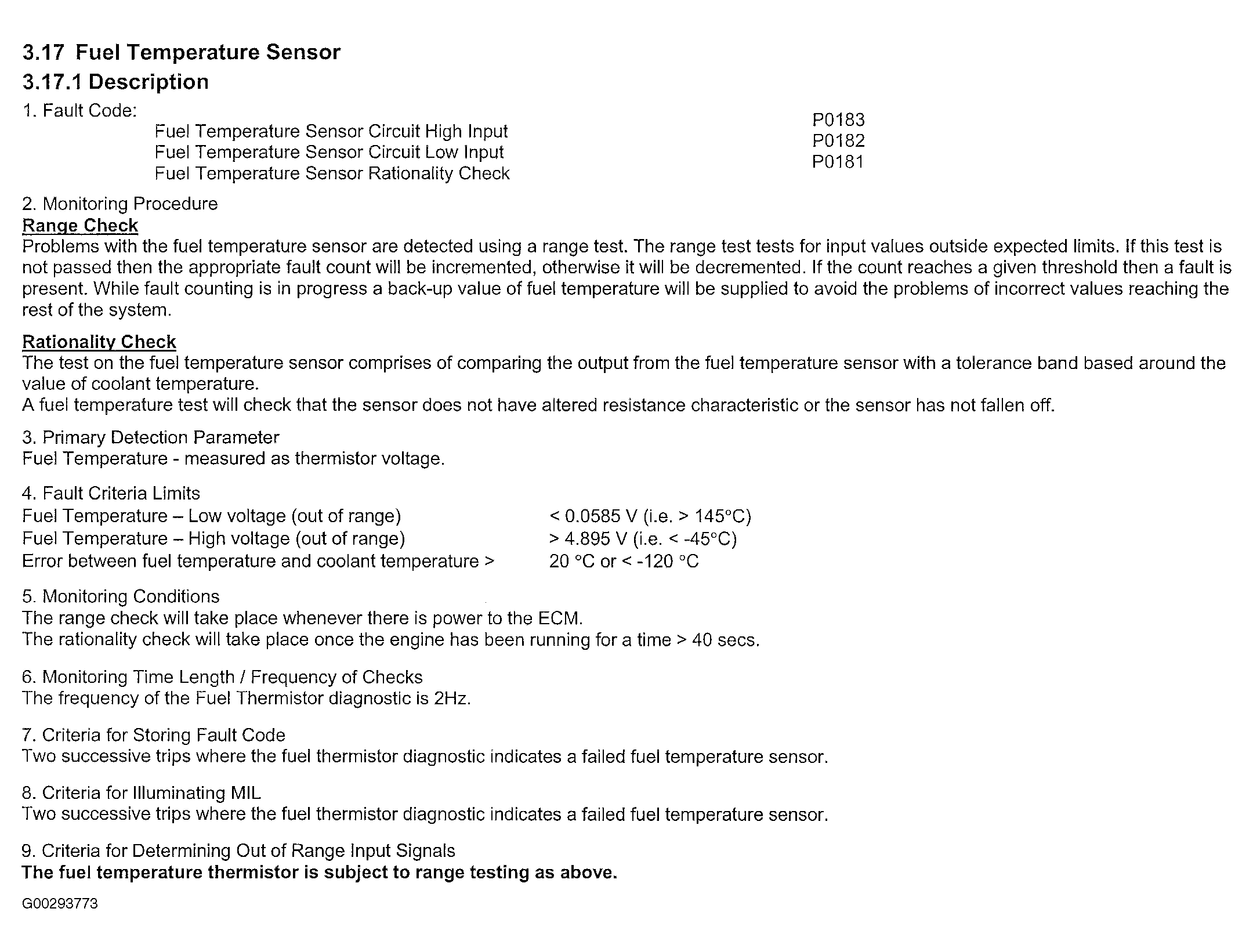 For fuel temperature sensor monitoring information see Fig 1
