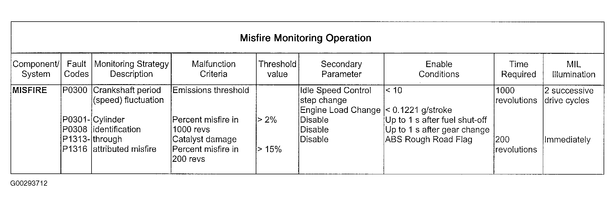 This monitor covers information for DTC P0300-P0308, P1313, P1314 and P1316.