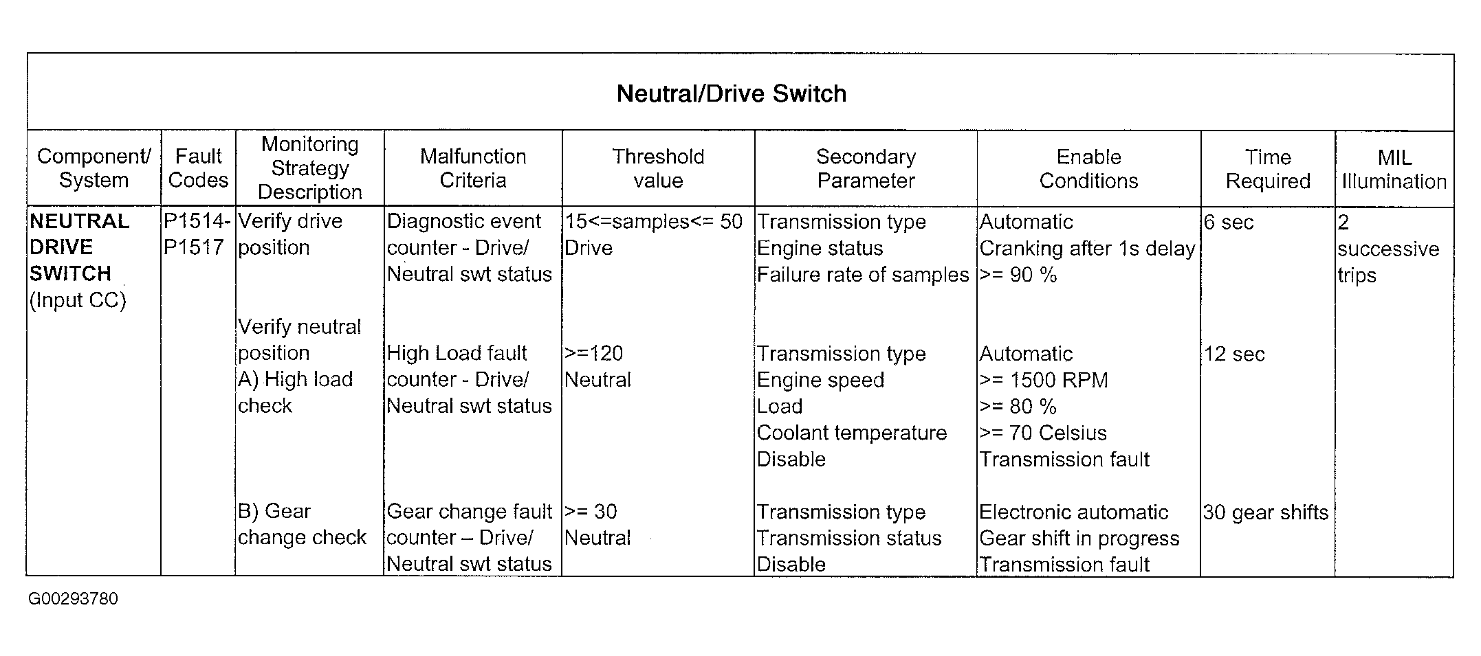 For neutral/drive switch monitoring information see