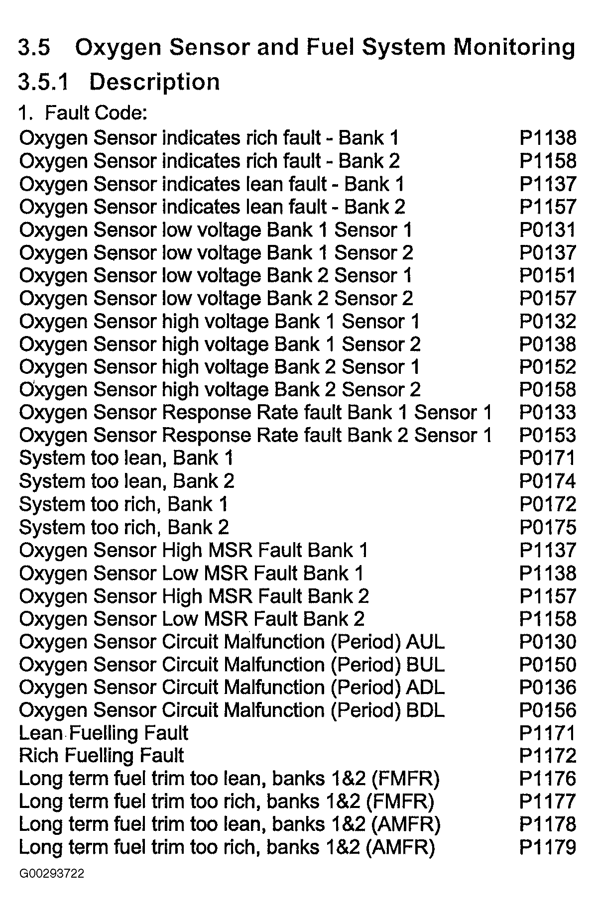 Fig 1: Oxygen Sensor & Fuel System Monitoring Description (1 Of 5)