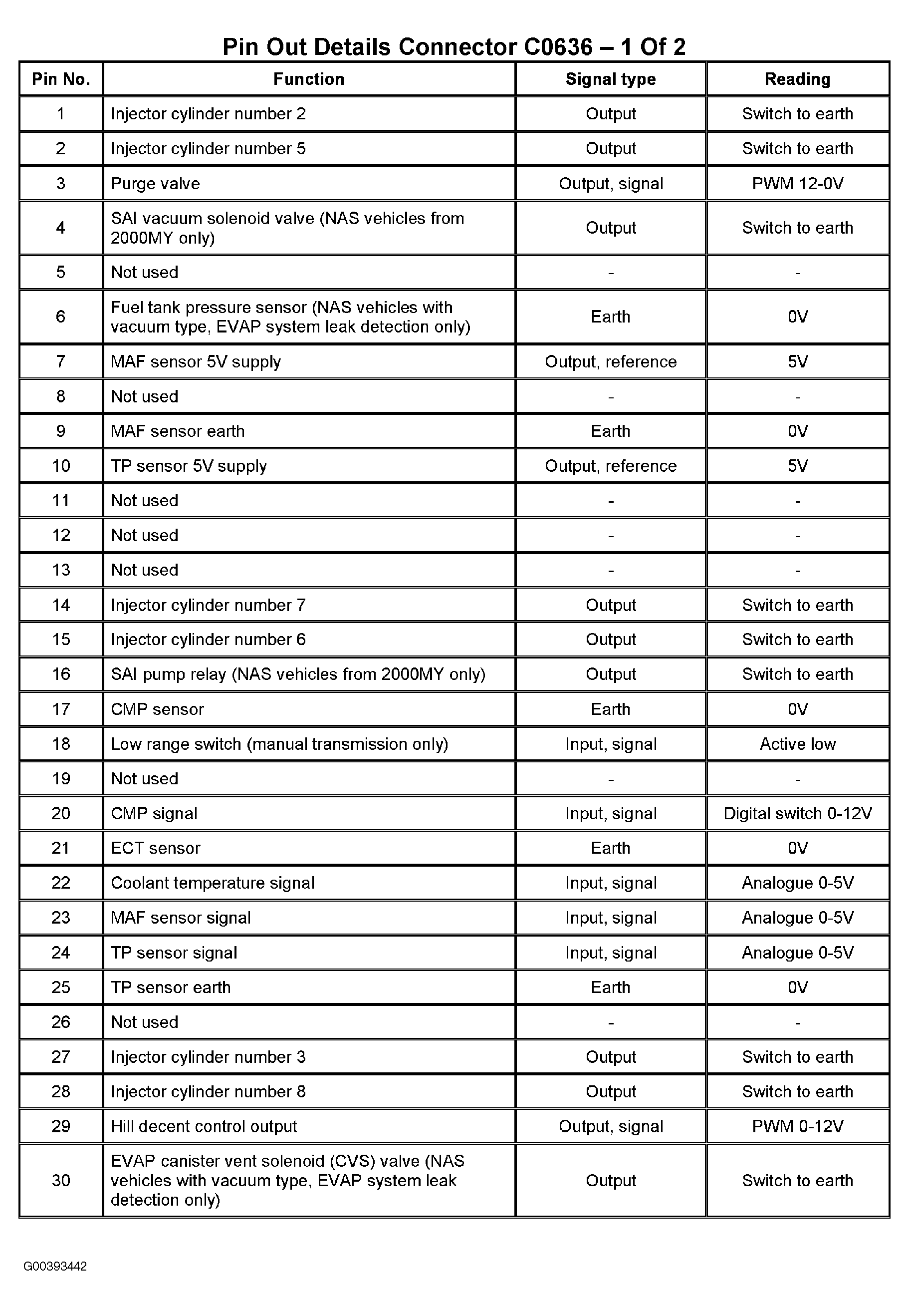 Home >> Land Rover >> 2000 >> Discovery >> Repair and Diagnosis (Single Page) >> Accessories & Equipment >> Cruise Control Systems >> Engine Controls - Description & Operation >> Description - Engine Management >> Engine Control Module (ECM) >> ECM Input/Output >> Connector 3 - C0636