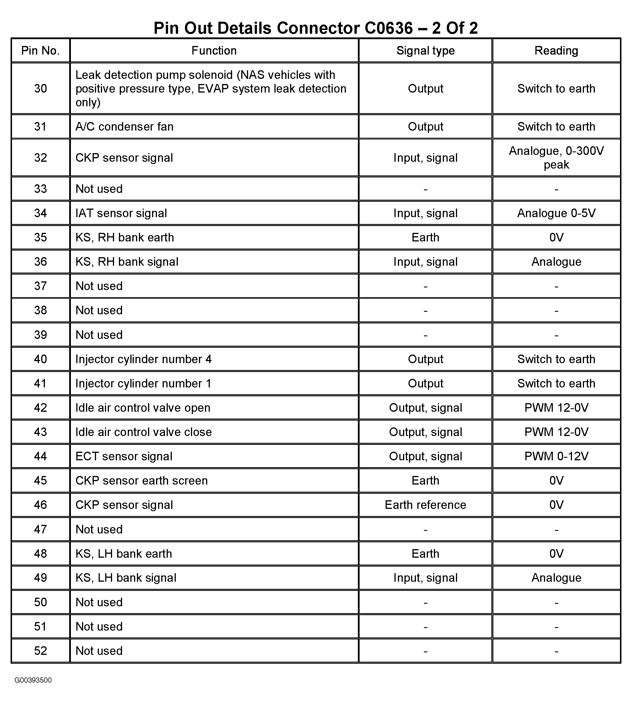 Fig 1: Pin Out Details Connector C0636 - 1 Of 2