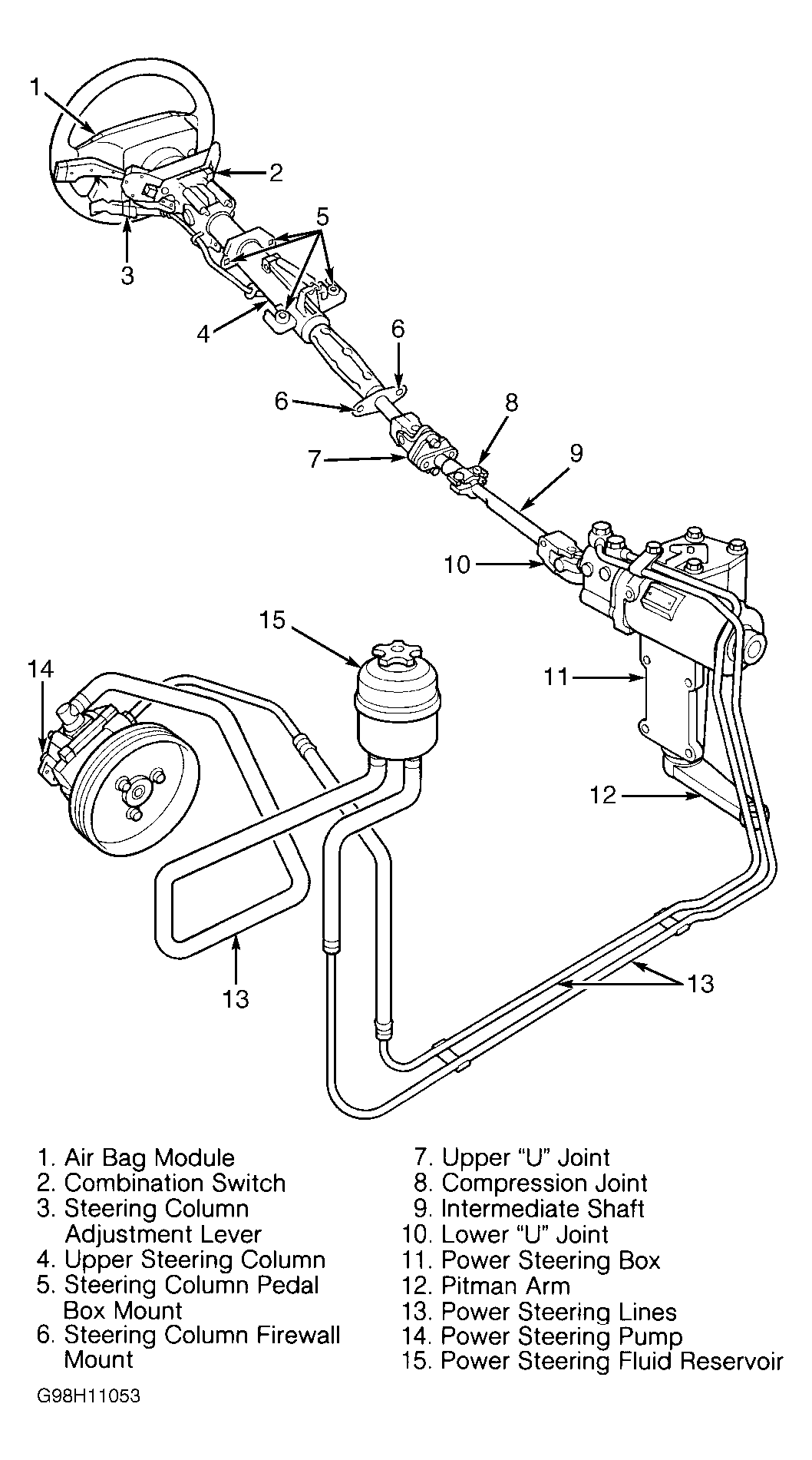 Before removing steering column and intermediate shaft, ensure front wheels are in a straight-ahead position. DO NOT turn steering wheel with intermediate shaft removed. Air bag system rotary coupler and/or steering wheel switches may be damaged.