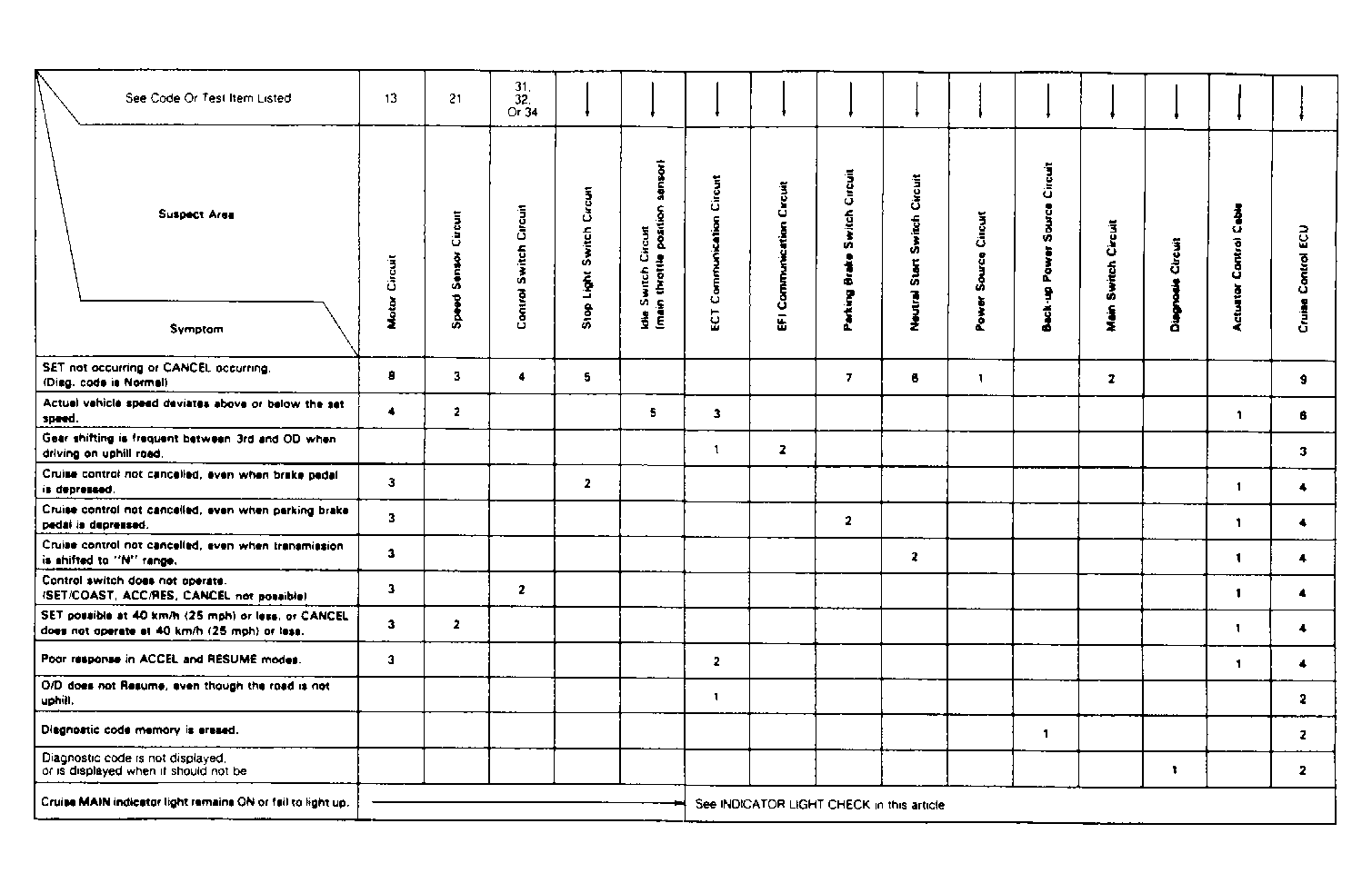 - Perform INPUT SIGNAL CHECK under TROUBLE SHOOTING in this article. Check cruise control indicator light while driving vehicle above and below 25 MPH (40 KM/H).