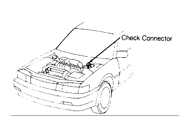 1. Check fuel pressure. Ensure a sufficient amount of fuel is in fuel tank. Turn ignition off. Locate check connector. See Fig 1 or Fig 2. Using a jumper wire, connect check connector terminals +B and FP. See Fig 3. Turn ignition on.