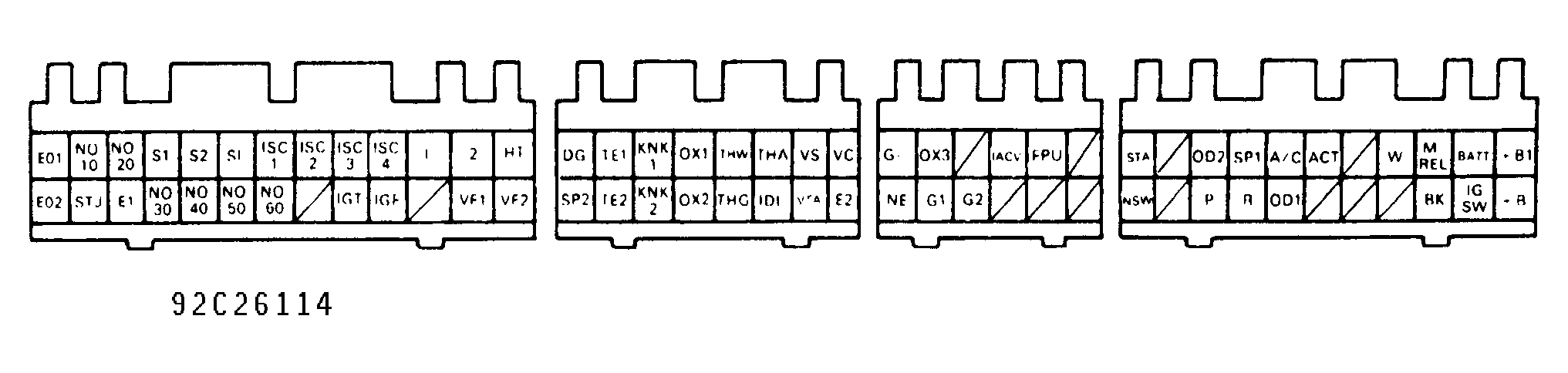 - Turn ignition on. Using a DVOM, measure voltage between ground and ECU terminals BATT, IG SW, M-REL, +B and +B1. See Fig 2. Battery voltage should be present.