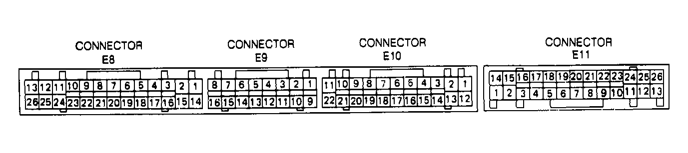 - Ensure ignition is off. Using a DVOM, measure resistance between ECU terminal No. 22 of connector E10 and ground with ECU connector connected. See Fig 1.