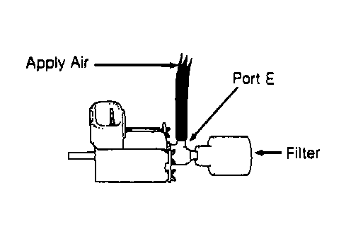 - Apply battery voltage between VSV terminals. Apply air to port "E". See Fig 1. Air should flow from port "E" to filter. If air does not flow as indicated, replace VSV.