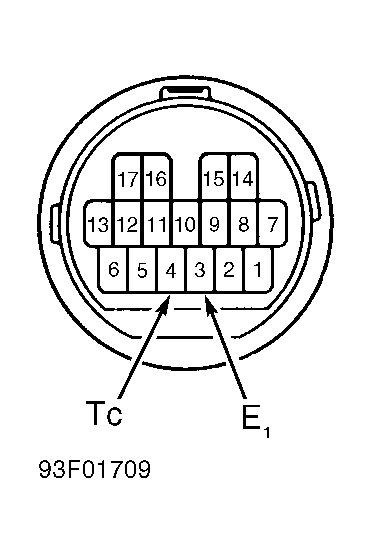 - Locate Total Diagnostic Communication Link (TDCL) under left side of instrument cluster. Turn ignition on. Using Tester (09843-18020), connect terminals Tc and E1 of TDCL. See Fig 1.