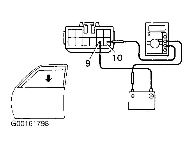 - Check that the current increases up to approximately 14.5 amperes or more when the window stops going down. If operation is not as specified, replace the master switch.