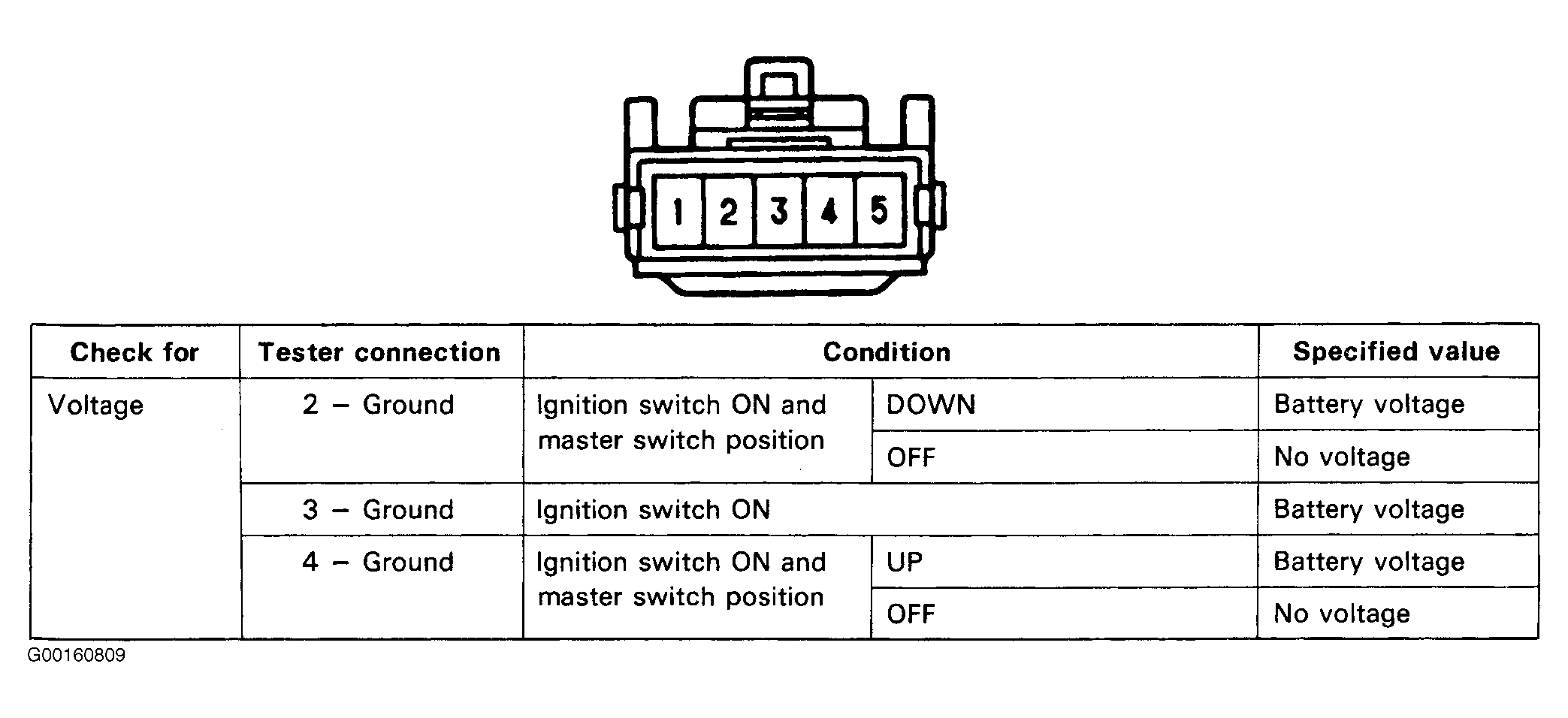 Disconnect the connector from the switch and inspect the connector on the wire harness side, see Fig 1. If the circuit is not as specified, inspect the circuits connected to other parts.