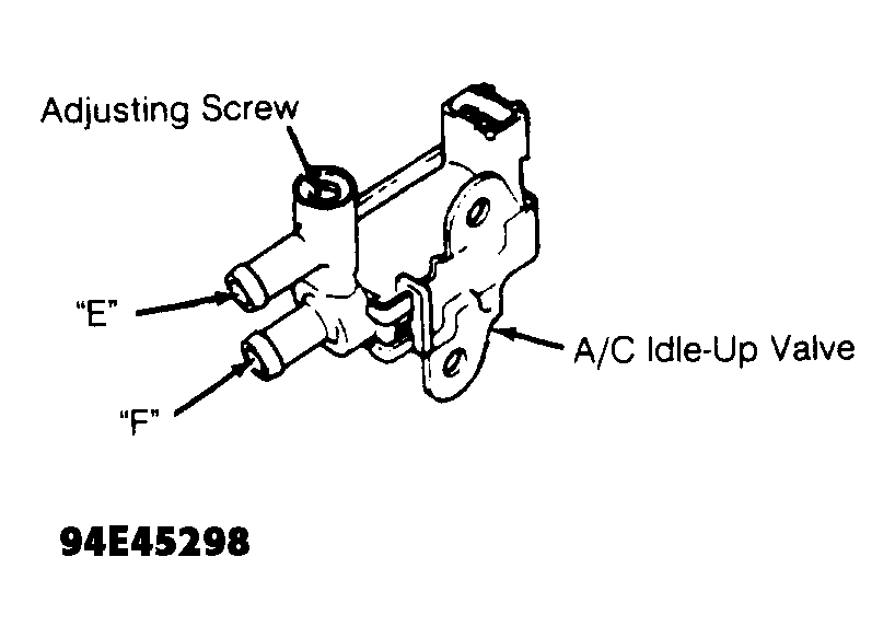 If engine speed increased by more than 100 RPM, adjust A/C idle-up valve as follows: Use a 4-mm hexagon wrench to turn screw on A/C idle-up valve. See Figure. Turn screw until engine speed is about 100 RPM more than engine speed that was previously recorded.