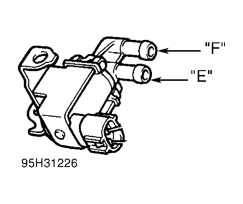 - Using jumper wires, apply battery voltage to VSV terminals. Air from pipe "E" should exhaust out pipe "F". See Figure. Disconnect jumper wires. Air should not exhaust out pipe "F". If VSV does not operate as specified, replace VSV. If VSV operates as specified, go to next step.