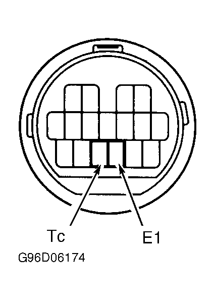 - Disconnect front passenger's door ECU connectors. Connect jumper wire between DLC2 terminal E1 and terminal Tc. See Figure. Turn ignition on. Check open door indicator light for any trouble codes. If Codes 14 and 15 are present, go to next step. If no codes are present, replace front passenger's door ECU.