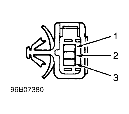 - Remove right front door panel to access front passenger door key lock and unlock switch 3-pin connector. Disconnect 3-pin connector. Check for continuity between terminals No. 1 and 2. See Figure. Continuity should exist with door key lock and unlock switch in LOCK position. Check for continuity between terminals No. 2 and 3. Continuity should exist with door key lock and unlock switch in LOCK position. If continuity is not as specified, replace door lock assembly. If continuity is as specified, repair or replace wiring and connectors between door key lock and unlock switch and front passenger's door ECU.