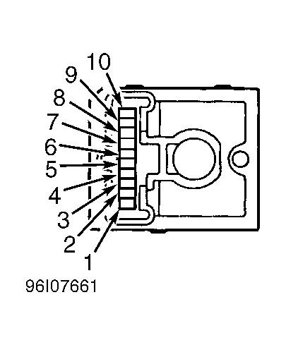 Remove appropriate components to access power mirror control switch 10-pin connector. Disconnect power mirror control switch 10-pin connector. Check for continuity between specified terminals of power mirror control switch. See Fig 1. See POWER MIRROR CONTROL SWITCH TEST table. If continuity is not as specified, replace power mirror control switch. If continuity is as specified, repair or replace wiring harness between appropriate power mirror control switch and tilt/telescopic ECU.