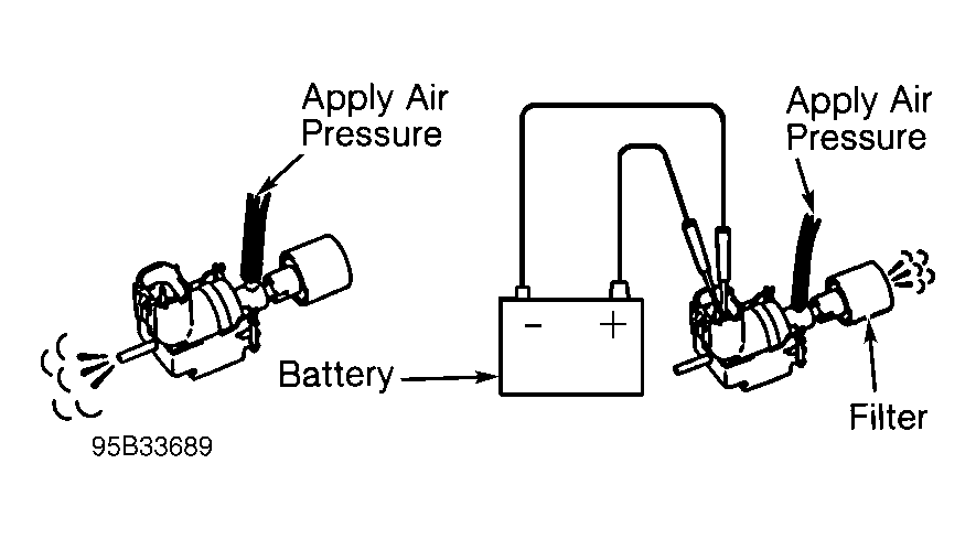 6. Apply battery voltage and ground to electrical terminals on fuel pressure control VSV and reapply air pressure. Air pressure should now pass from the filter. See Fig 1. Replace fuel pressure control VSV if defective.