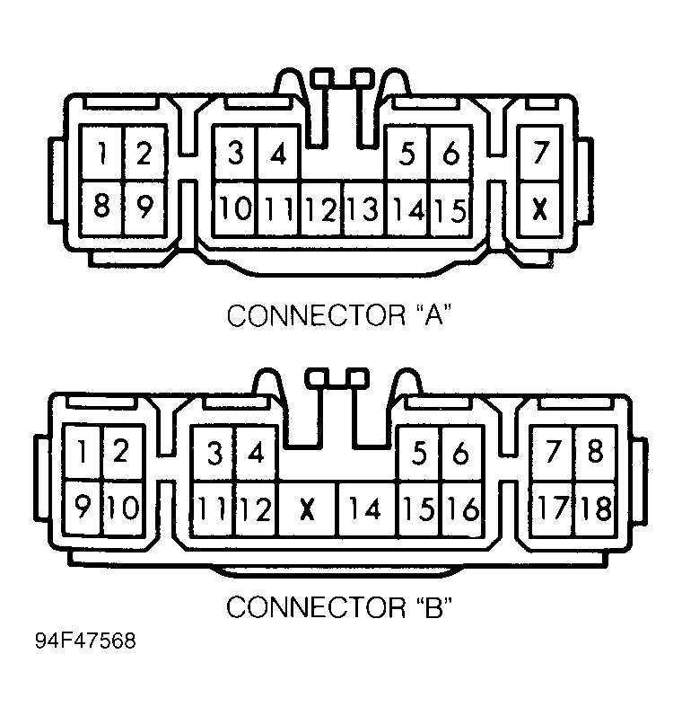 • Connector "B", terminal No. 6 (Violet wire). See Figure.