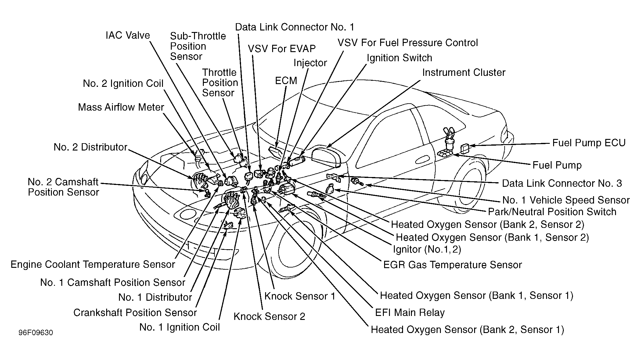 ECM controls engine operation based on input signals from various sensors. See Fig 1 ECM also controls transmission. If self-diagnostic system detects a fault, it stores a trouble code in the ECM memory, and turns on the Malfunction Indicator Light (MIL), also known as CHECK ENGINE light. For more information, see appropriate SELF-DIAGNOSTICS article.