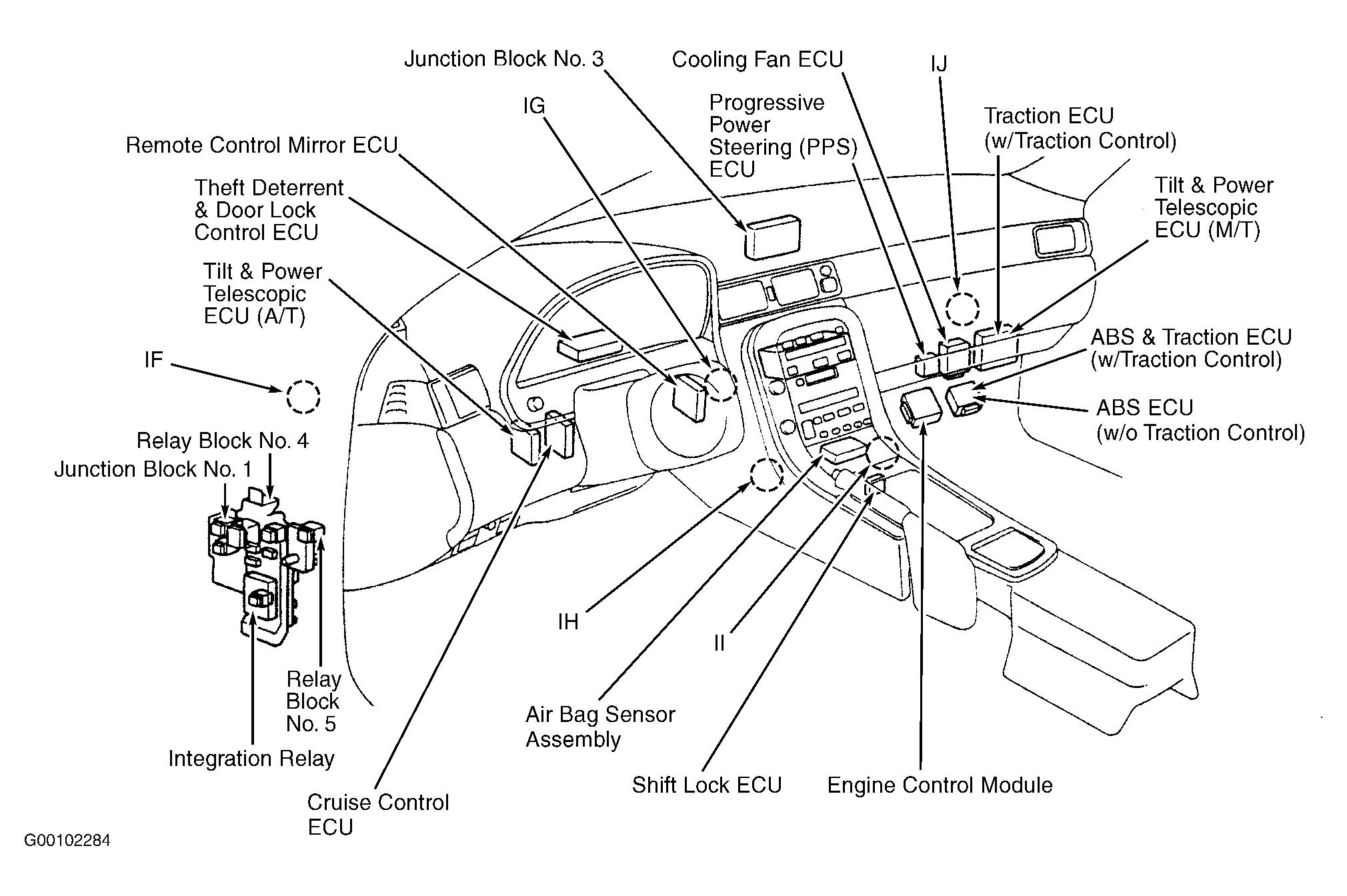 | Junction Block No. 3 | Behind center of dash. See Figure. |