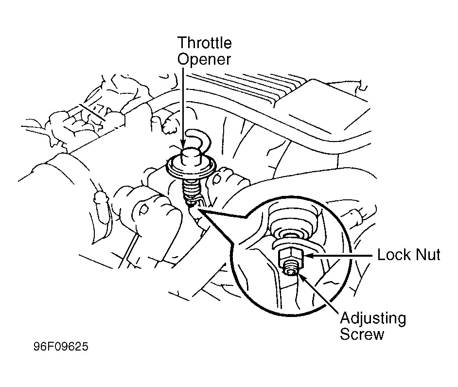 Fig 1: Locating Throttle Opener Adjusting Screw