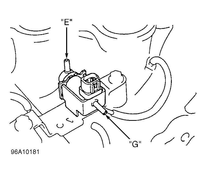 - Check VSV operation. Apply battery voltage to VSV terminals. Apply air pressure to VSV port "G". Air from port "G" should not flow from port "E". See Figure. Remove battery voltage from valve terminals. Air from port "G" should flow from port "E". Replace VSV as necessary. If VSV operates as specified, check for an open in wiring harness between EGR VSV and ECM. See appropriate wiring diagram in WIRING DIAGRAMS article. Repair wiring as necessary.