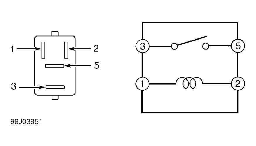 - Apply battery voltage and ground between terminals No. 1 and 2. Continuity should exist between terminals No. 3 and 5.