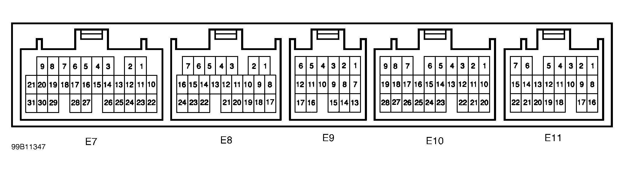 1. Access ECM behind glove box. Turn ignition on. Leave ECM connectors attached. Backprobing connector, connect voltmeter negative lead to terminal E1 and positive lead to terminal "B" at ECM connector. See appropriate wiring diagram in WIRING DIAGRAMS article. See Figure-10. If 9-14 volts is present, ECM power circuit is okay. Diagnose by symptom. See TESTS W/O CODES article. If 9-14 volts is not present, go to next step.