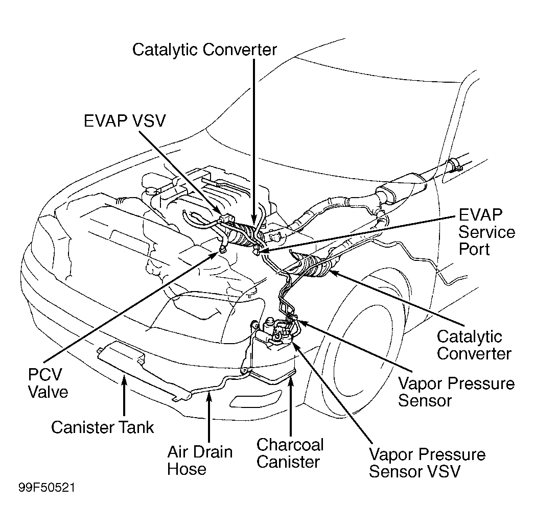 - If fuel EVAP system operates properly, it may be necessary to check operation of EVAP Vacuum Switching Valve (VSV), vapor pressure sensor and vapor pressure sensor Vacuum Switching Valve (VSV). See EVAP VACUUM SWITCHING VALVE , VAPOR PRESSURE SENSOR CIRCUIT and VAPOR PRESSURE SENSOR VACUUM SWITCHING VALVE .