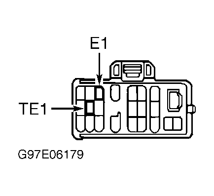 1. Ensure engine is at normal operating temperature. Ensure idle speed is 650-750 RPM. Ensure transmission is in Neutral. Turn A/C off. Connect Fused Jumper Wire (09843-18020) between terminals TE1 and E1 of DLC No. 1 located at front of air intake chamber. See Fig 1. On ES300, DLC No. 1 is located on front of air intake chamber. On RX300, DLC No. 1 is located on left side of engine compartment, behind fuse box.