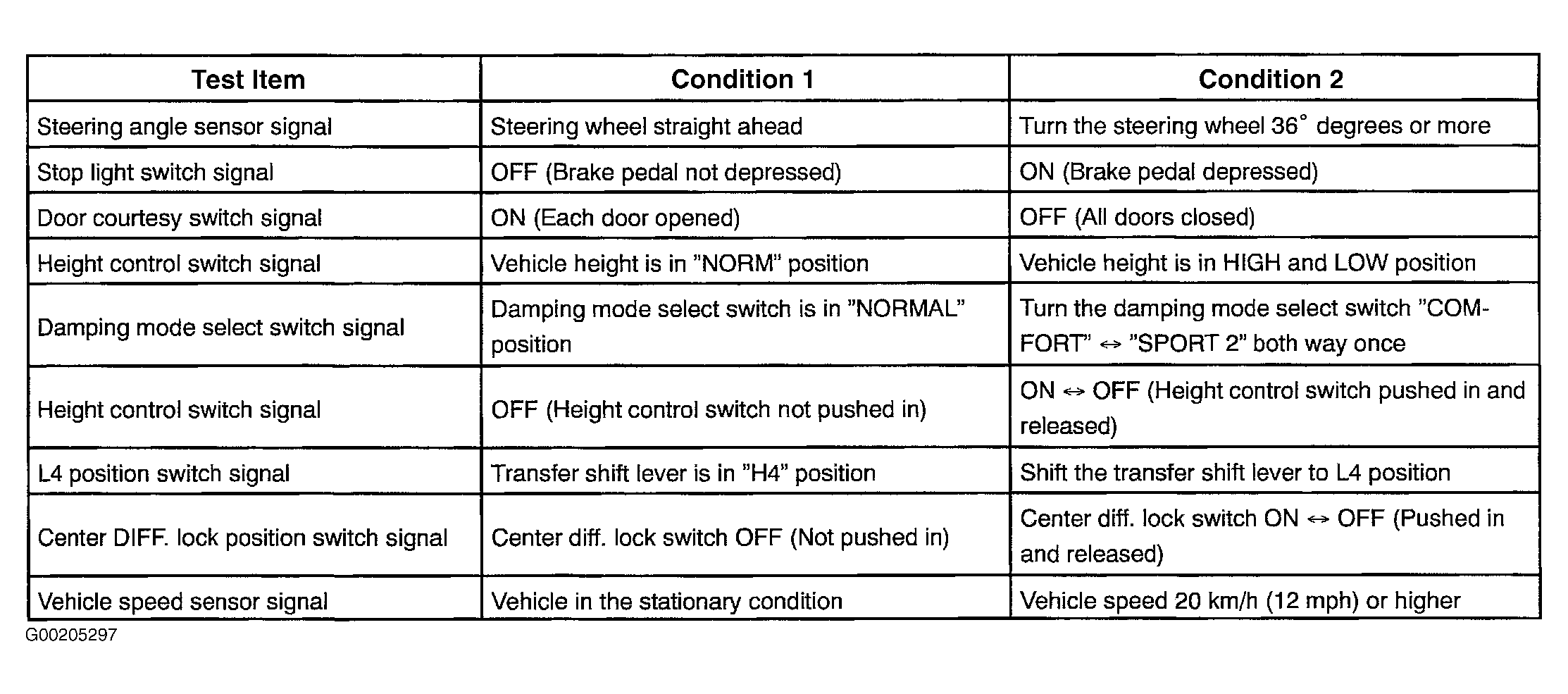 This checks if signals from steering sensor, stop light switch, etc. are being input normally to suspension control ECU. Individual checking of each signal can be performed. See Figure.