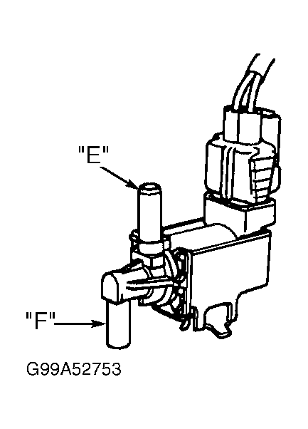 - Connect scan tool to Data Link Connector (DLC) No. 3. See Figure. Ensure ignition is on. Select ACTIVE TEST mode on scan tool. Locate pressure switching valve VSV on charcoal canister or on top of fuel tank. Pressure switching valve VSV has 2 vacuum ports and a Brown 2-pin connector with White/Blue and Black/Red wires. Disconnect vacuum hoses from pressure switching valve VSV. Using scan tool, activate pressure switching valve VSV. Apply compressed air to port "E" of pressure switching valve VSV. Air should flow from port "F". See Fig 3. Using scan tool, turn pressure switching valve VSV off. Air should not flow from port "F". If VSV operates correctly, go to step 24. If VSV does not operate correctly, go to next step.