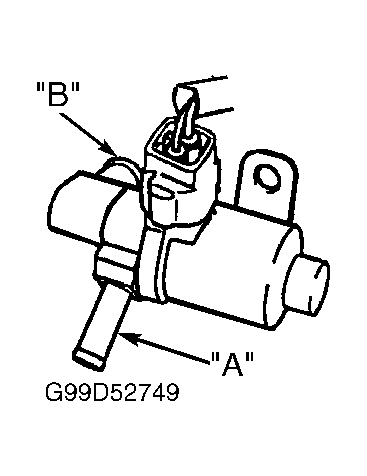 - Turn ignition off. Disconnect canister closed valve VSV vacuum hose. VSV has a Gray 2-pin connector and is located near mass airflow meter. Connect scan tool to Data Link Connector (DLC) No. 3. See Figure. Turn ignition on. Select ACTIVE TEST mode on scan tool. Using scan tool, turn canister closed valve VSV on. Apply compressed air to port "A" of canister closed valve VSV. Air should not flow from port "B". See Fig 2. Using scan tool, turn canister closed valve VSV off. Air should flow from port "B". If VSV operates correctly, go to step 21. If VSV does not operate correctly, go to next step.