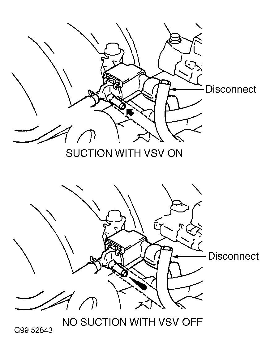- Turn ignition off. Check for correct routing, looseness, damage and blockage in vacuum hoses between intake manifold and EVAP VSV, and between EVAP VSV and charcoal canister. Repair as necessary. If hoses are okay, go to next step.