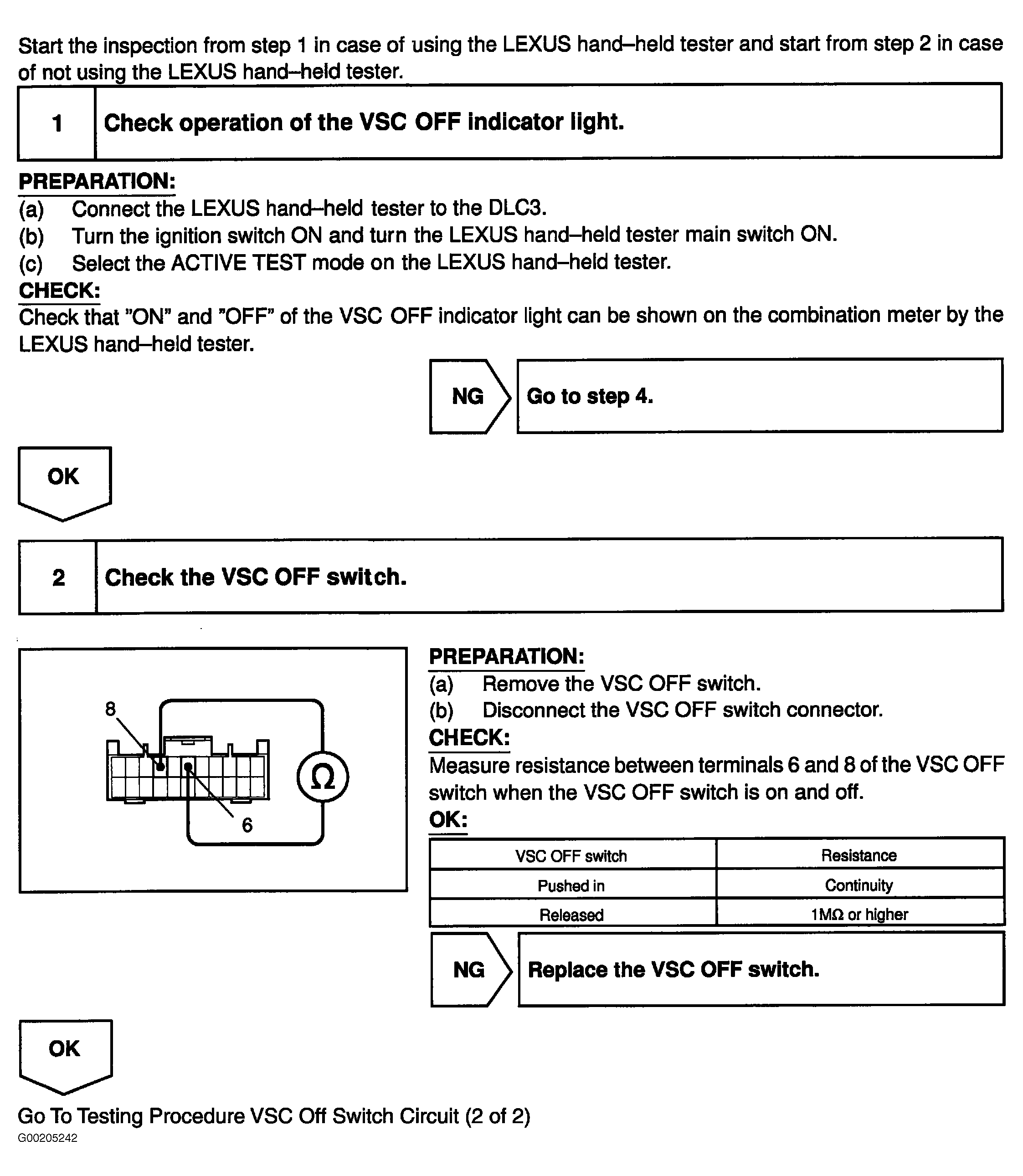 Fig 4: Testing Procedure VSC OFF Switch Circuit (2 Of 2)