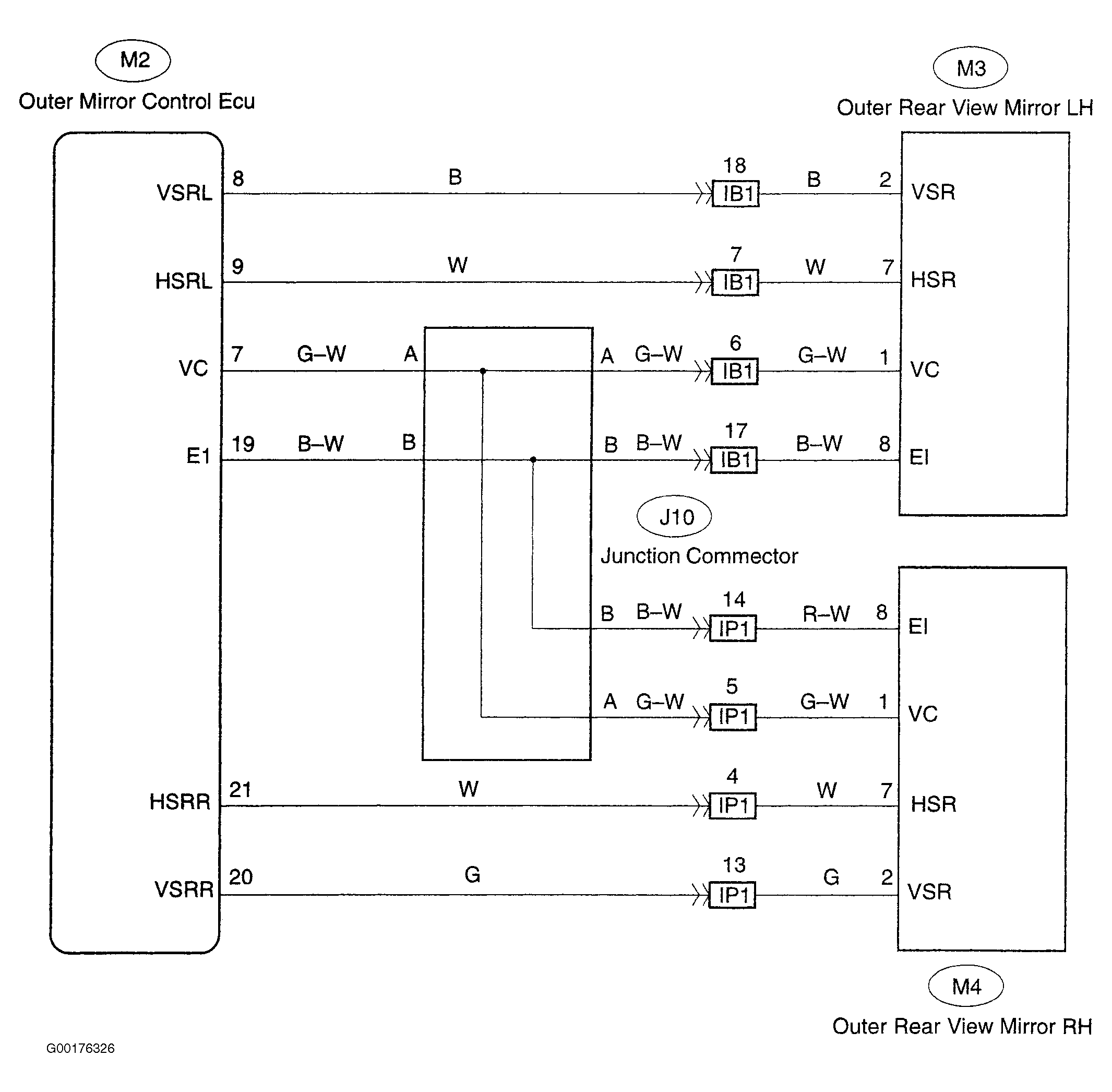 When the seat memory switch M1 and M2 is pressed, the memory seat ECU transmits the memorized mirror facing direction multiply to mirror ECU, then the mirror ECU drives the mirror motor. See Fig 1.