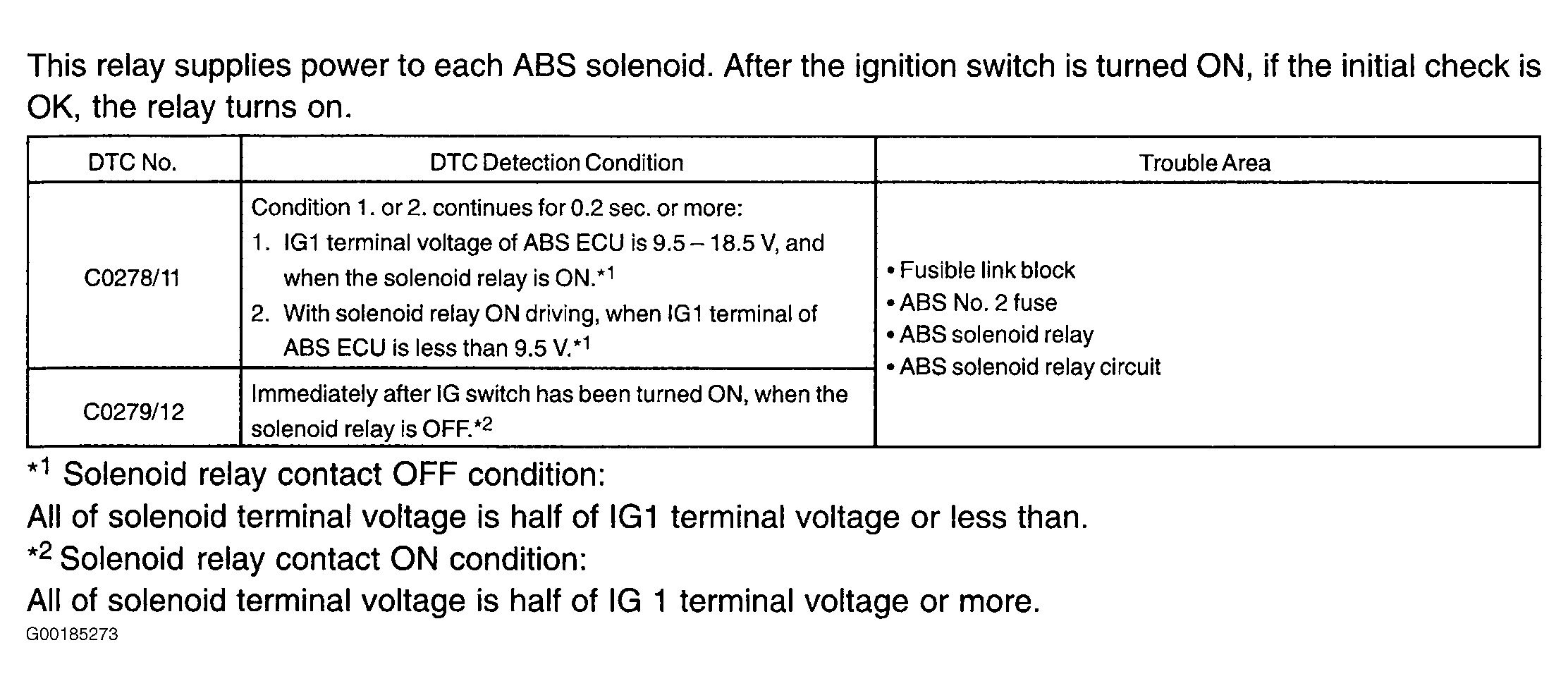 DTC C0279: Short Circuit In Abs Solenoid Relay Circuit & DTC C0278: Open Circuit In Abs Solenoid Relay Circuit