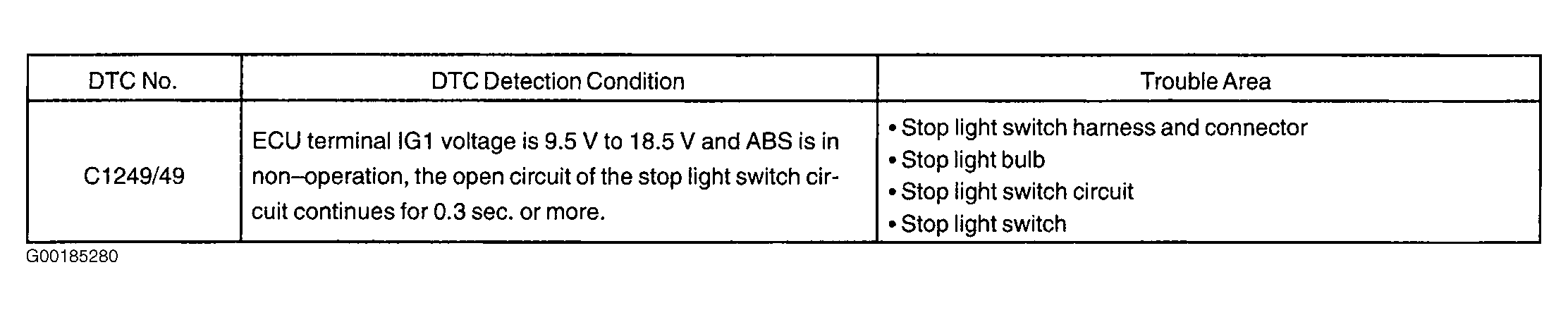DTC C1249: Open Circuit In Stop Light Switch Circuit