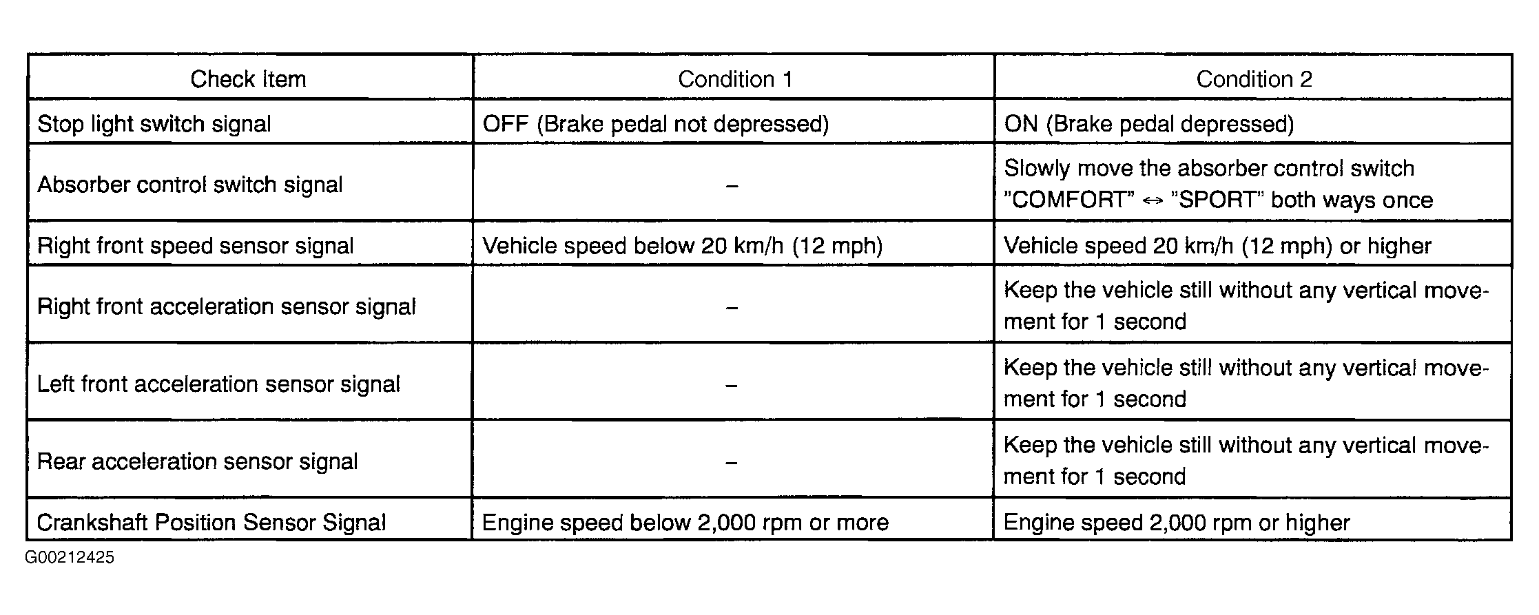 - Change each test item to condition 2. See Fig 1. Check that absorber control indicator light turns on for one second.