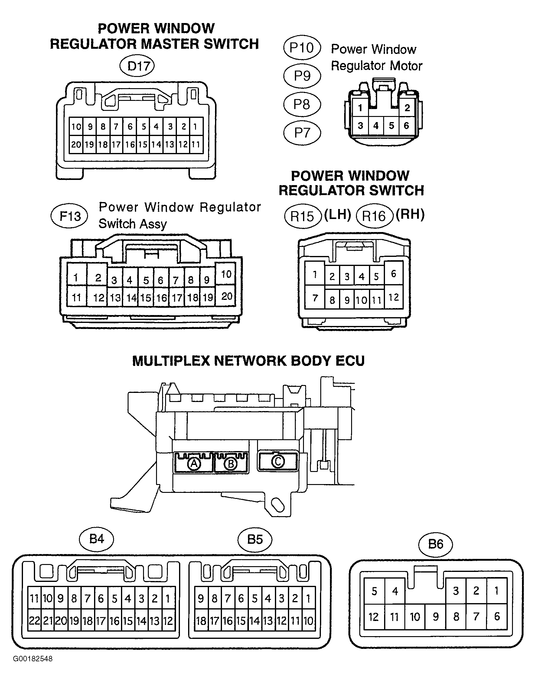 For power window connector views, see