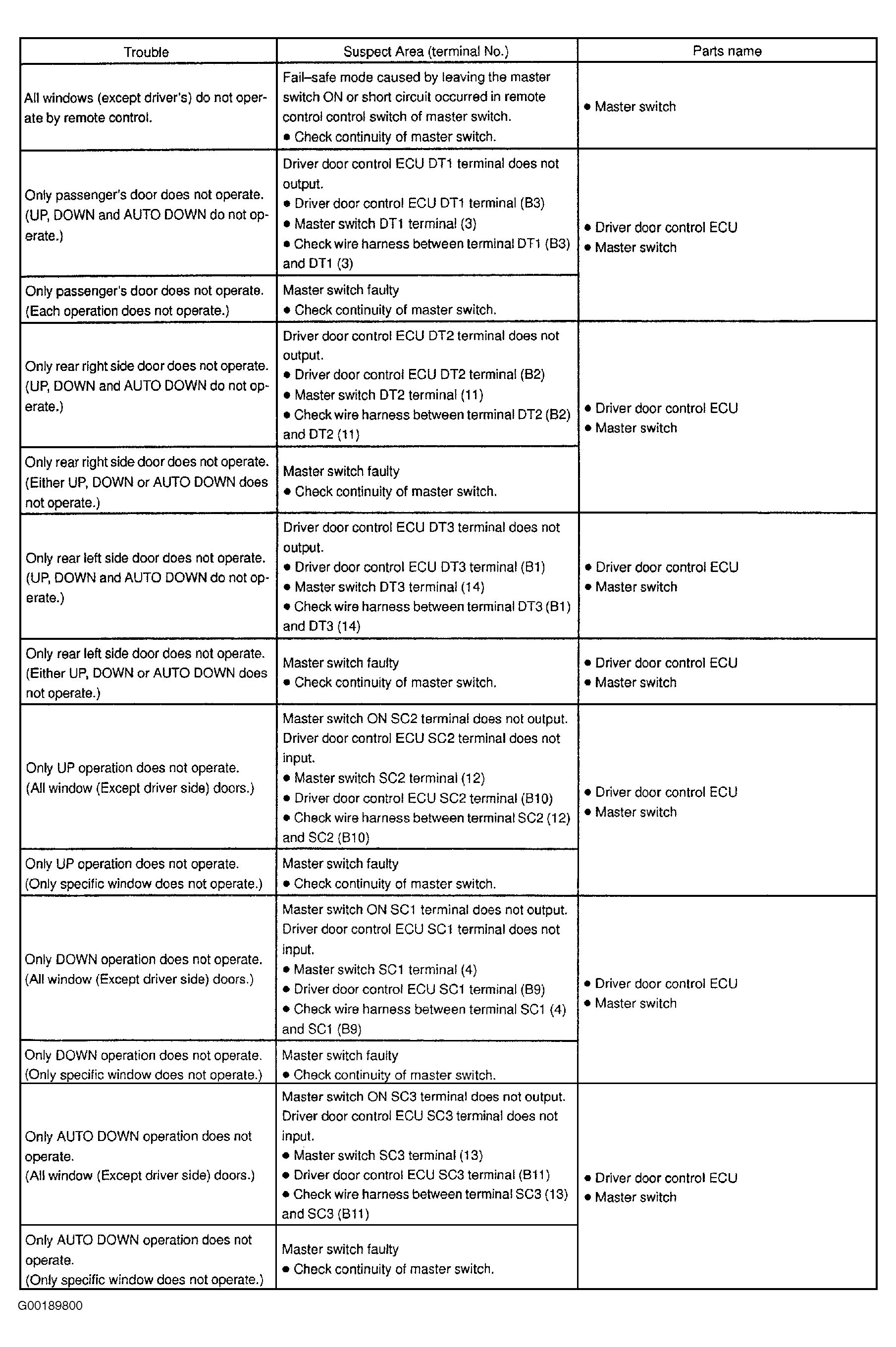 Fig 1: Identifying Remote Control Of All Windows (Except Driver's) Does Not Function With Master Switch Flowchart