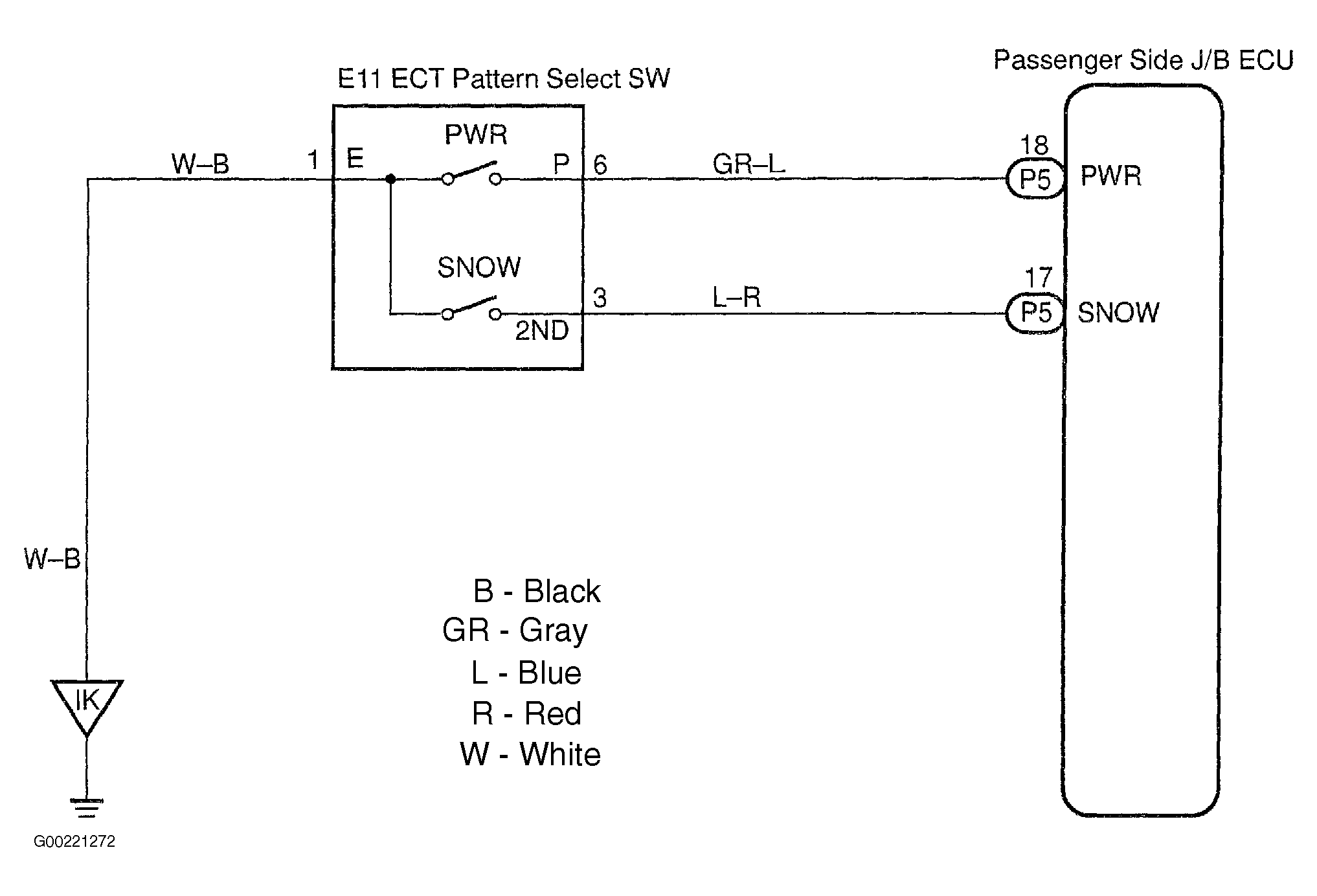 The passenger side junction block (body No. 3) ECU detects the state of the ECT (electronic control transmission) pattern select switch. For circuit diagram, see Fig 1.
