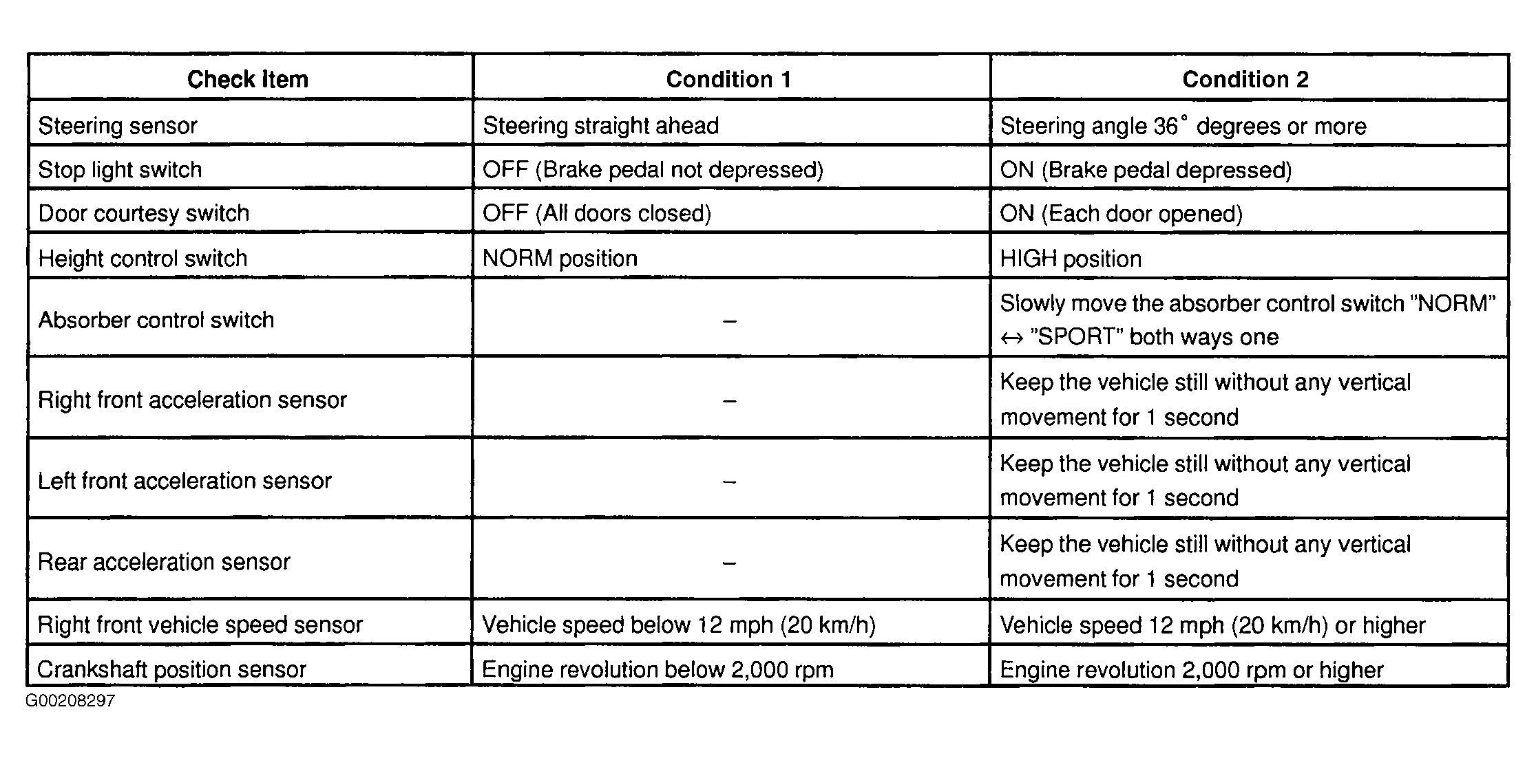 - Change each test item to condition 2. See Fig 1. Check that the absorber control indicator light illuminates for one second.