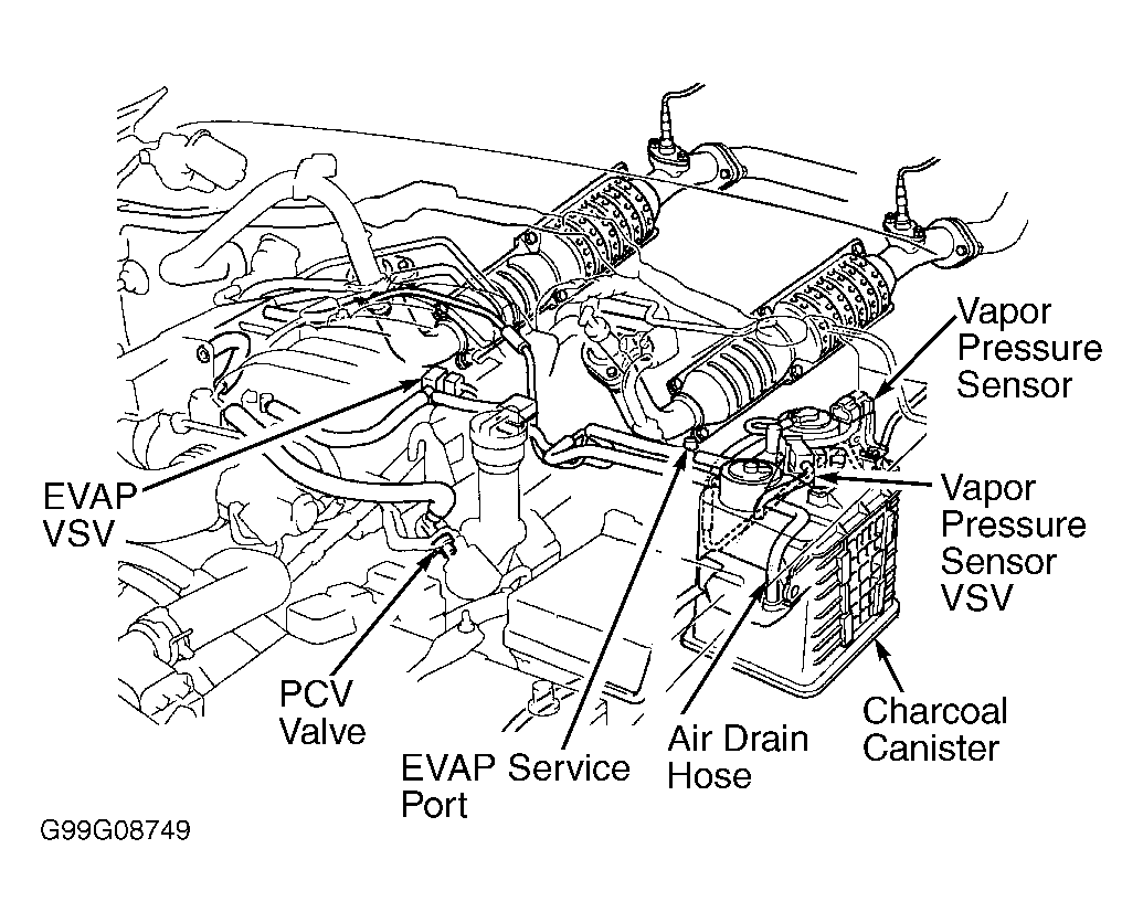 NOTE: To identify Fuel Evaporative (EVAP) system components, see Figure. When testing fuel EVAP system components, it may be necessary to use illustration to determine component location.